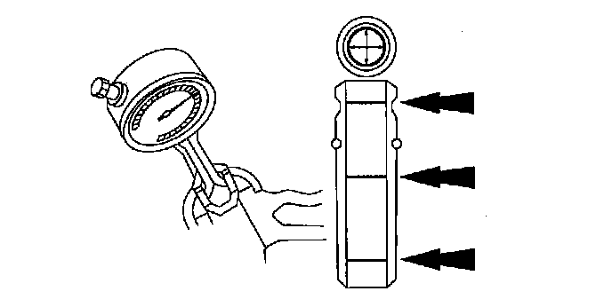 Valve Guide Inspection1. Measure the inner diameter of the valve guides in two directions where indicated. Verify the diameter is within specification.