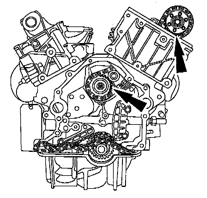 - The camshaft chain sprockets must be oriented correctly.