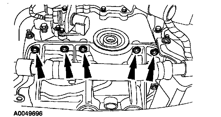 6. Remove the lower cylinder block cradle-to-engine front cover bolts.