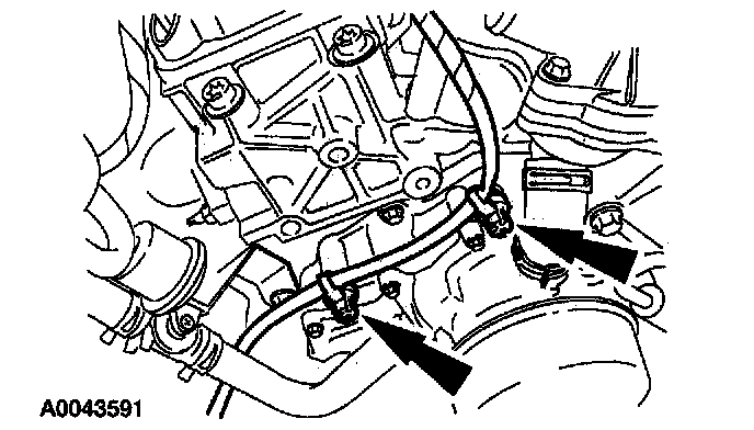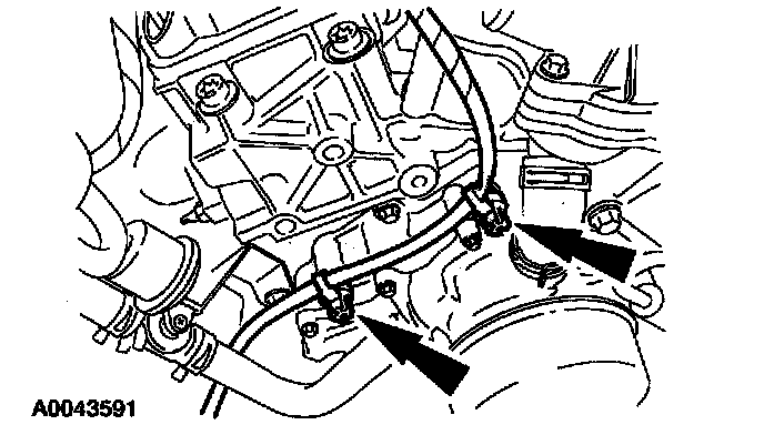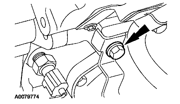 5. On A/C equipped vehicles, remove the A/C line bracket bolt and position the A/C line aside.
