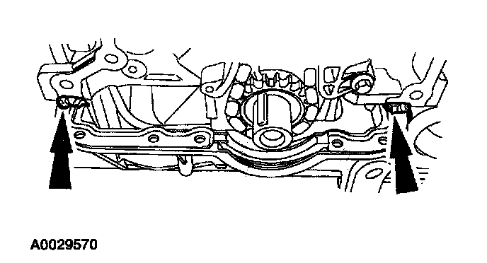 2. Apply silicone gasket and sealant to the oil pan and the engine block mating surfaces.