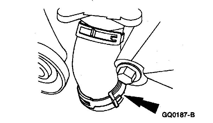 17. Release the hose clamp and remove the lower radiator hose.