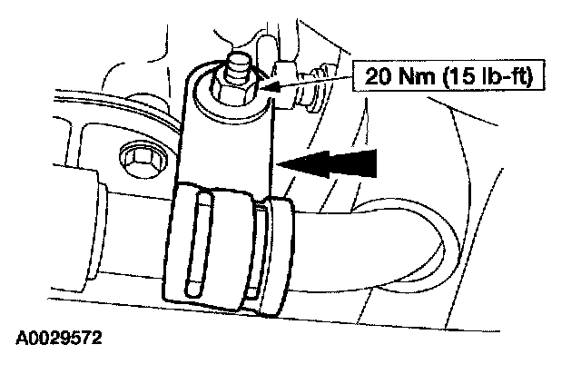 17. On A/C equipped vehicles, install the A/C line bracket and bolt.