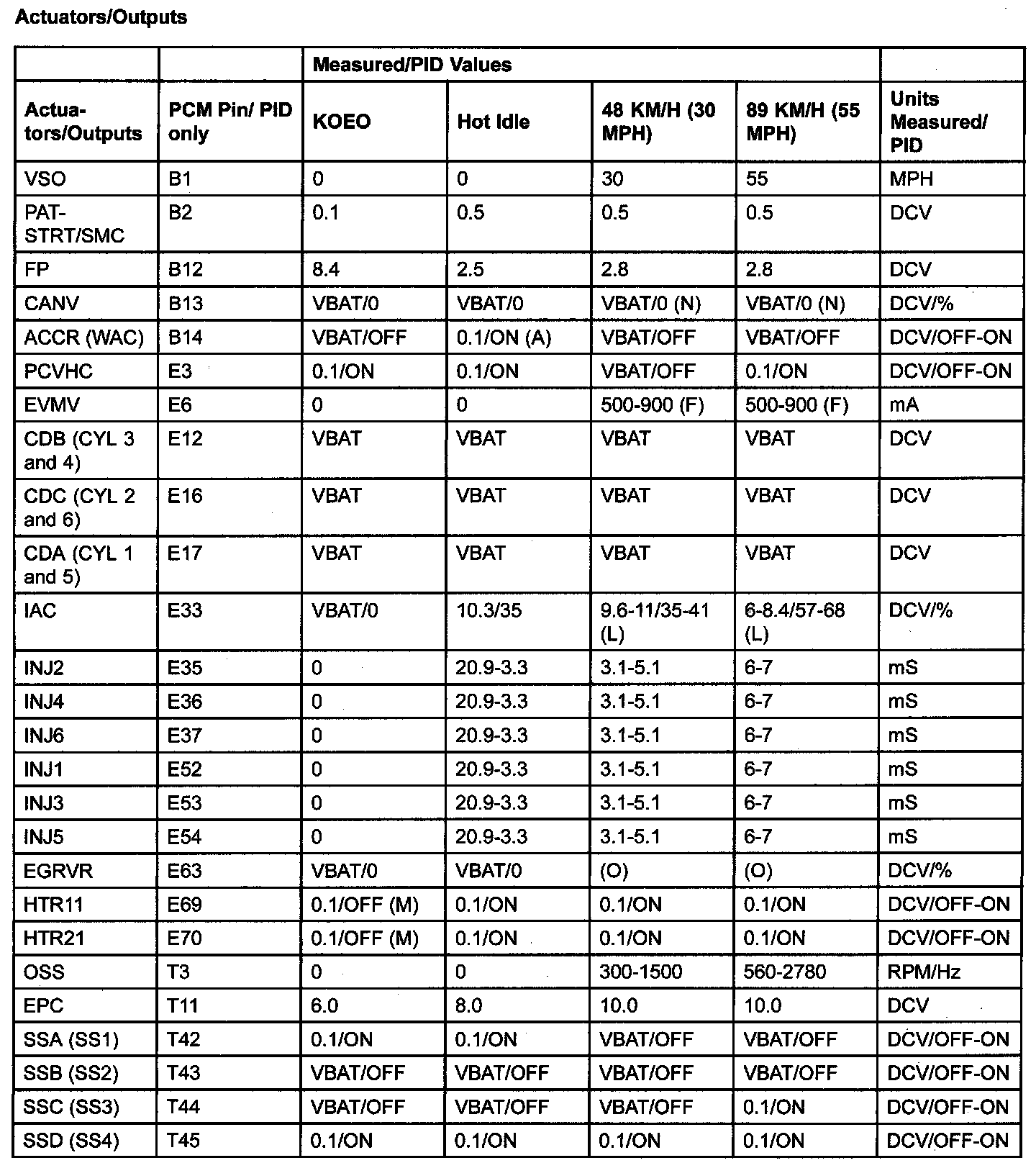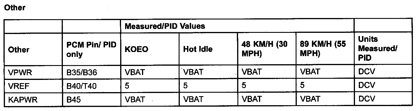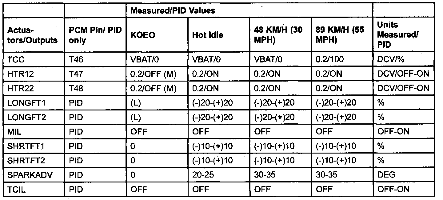 PID/DATA MONITOR ITEM TABLE