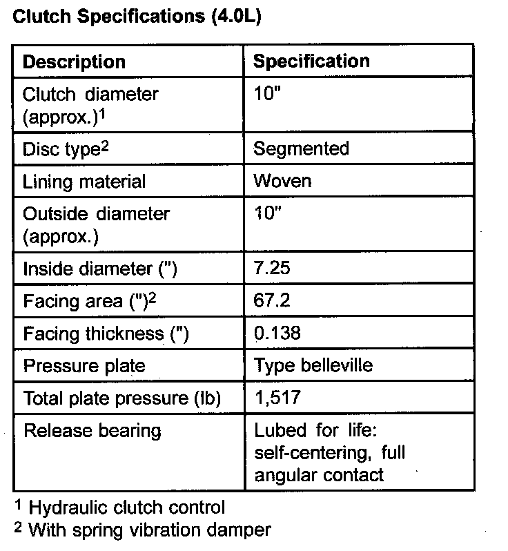 Manual Transmission Specifications 5 Speed Overdrive (4.0L)