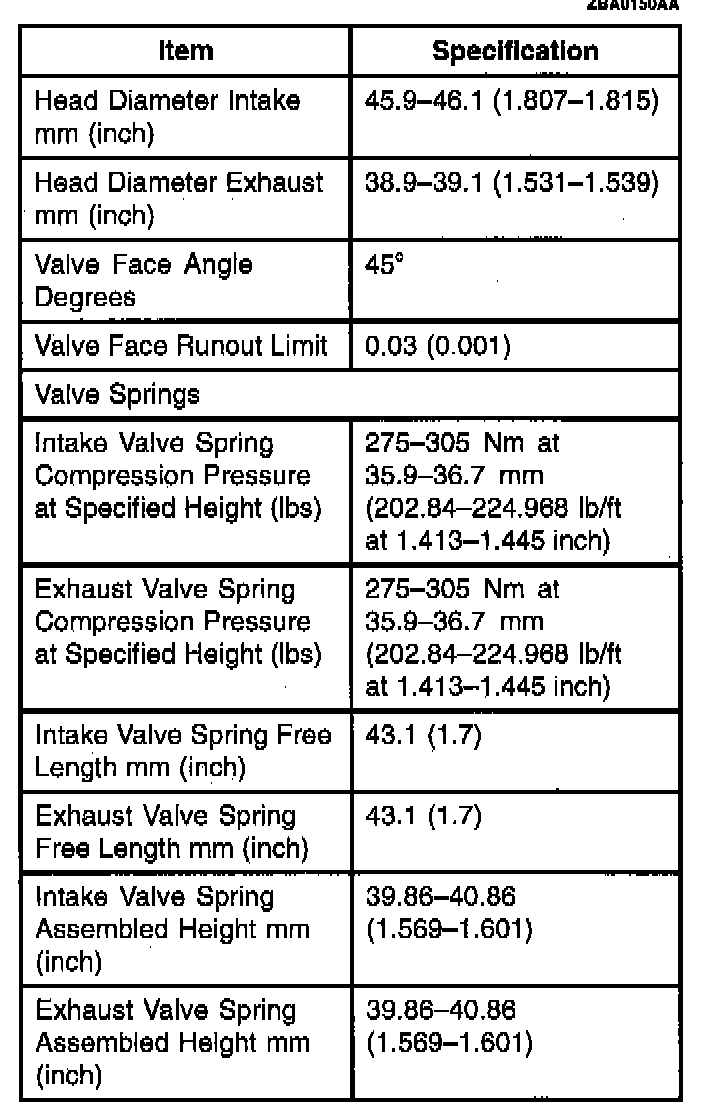 Cylinder Head and Valve Specifications