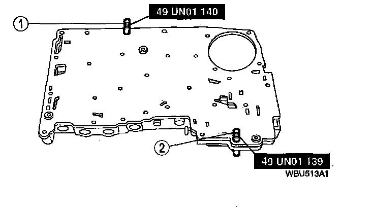 1) Remove large Valve Body Alignment Pin SST 49 UN01 140.