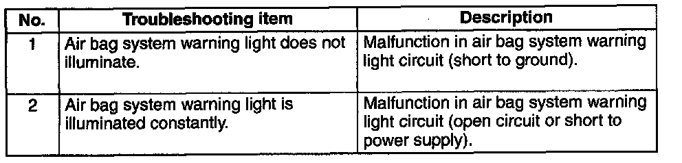 Use the chart below verify the symptoms of the trouble in order to diagnose the appropriate area.