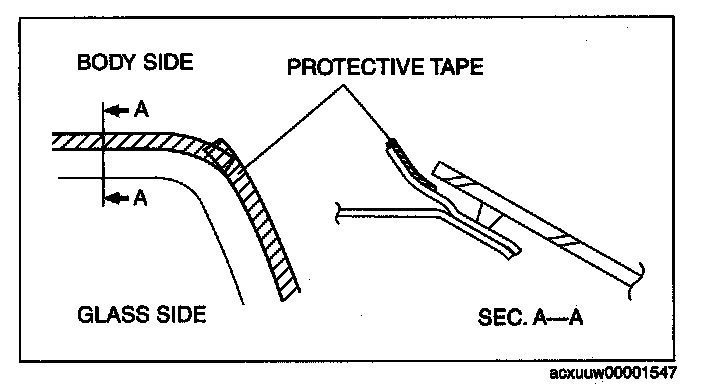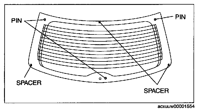 NOTE: Before removing the rear window glass from the body, mark the position of the glass by affixing tape to the glass and body panel.