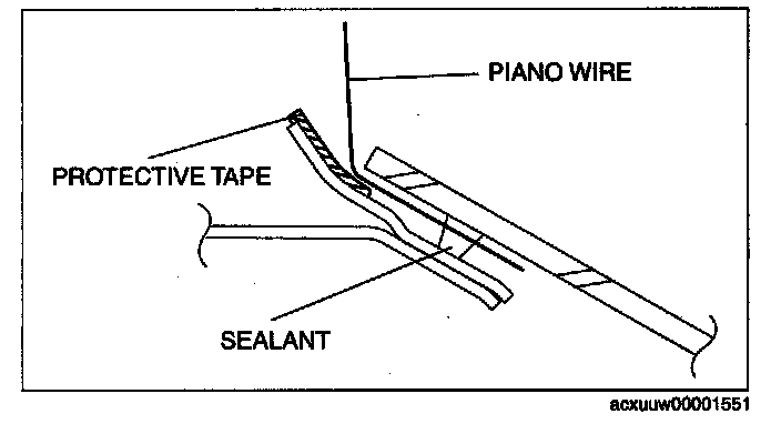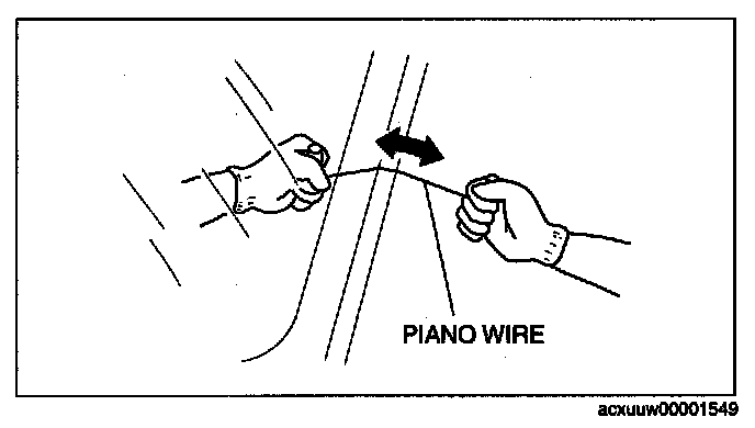 11. Insert the piano wire, which has been cut to sufficient length from inside the vehicle.