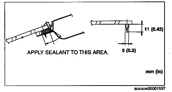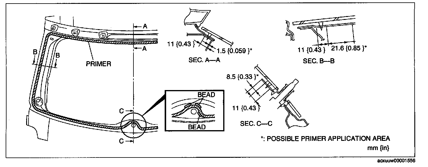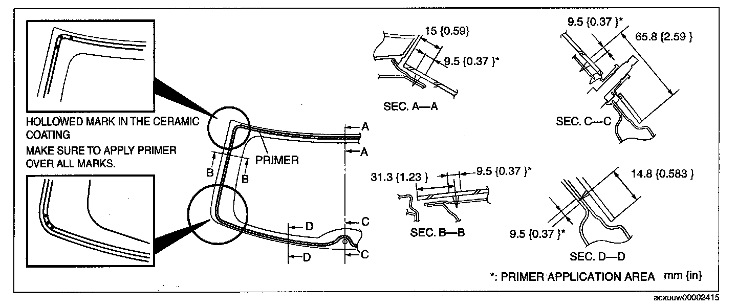 8. When reusing the liftgate, apply primer to the area where the Sealant has come off completely and allow it to dry for approx. 30 min