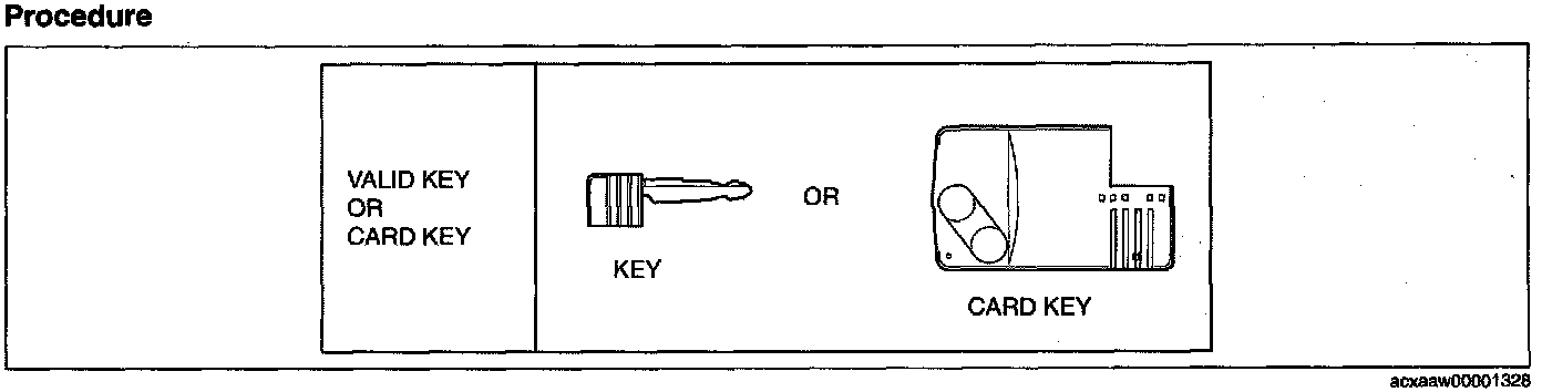 CAUTION: Do not place the card key in the vehicle when starting the engine with the valid key, otherwise programming cannot be performed. If the engine is started with the card key, remove the card key from the vehicle after the engine is started.