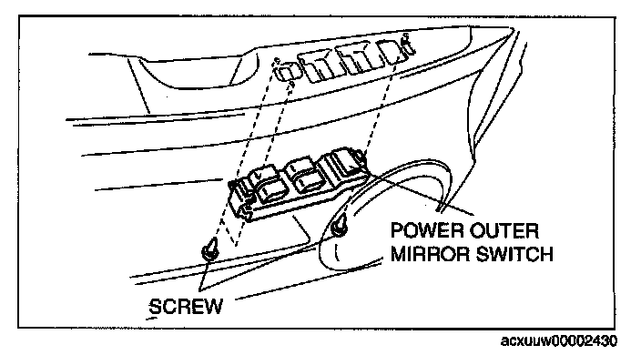 5. Remove the screws, then the power outer mirror switch.