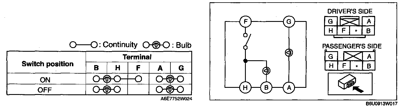 Inspect for continuity between the seat warmer switch terminals using an ohmmeter.