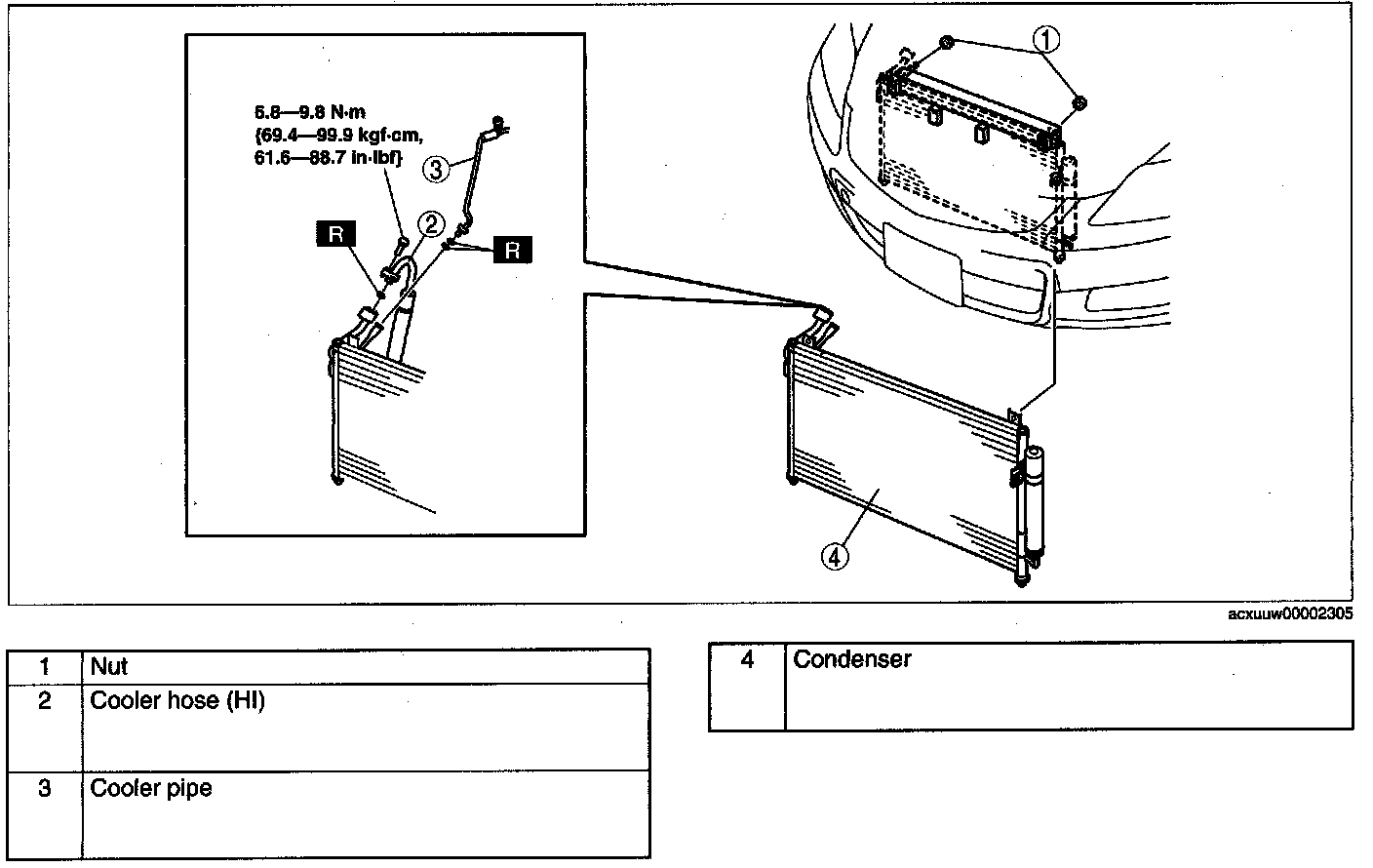 CONDENSER REMOVAL/INSTALLATION1. Disconnect the negative battery cable.