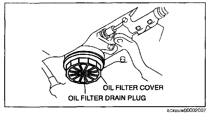 4. Remove the oil filter drain plug, and drain the engine oil.