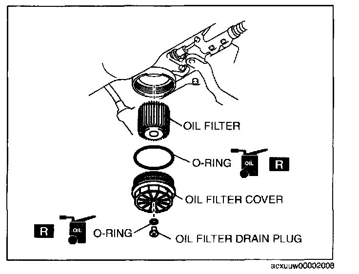6. Remove the oil filter cover and the oil filter.