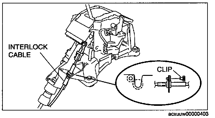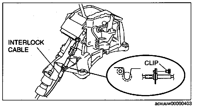 4. Remove the interlock cable from the selector lever.