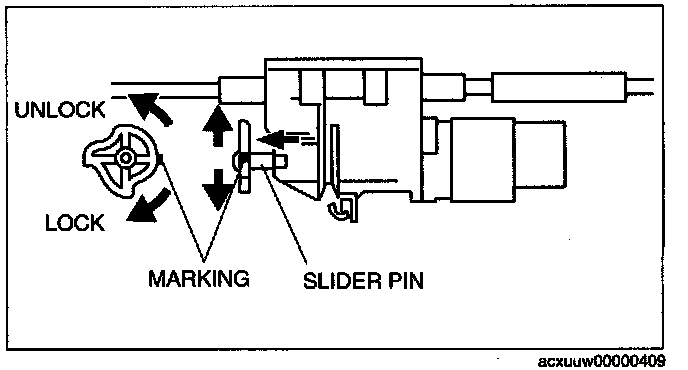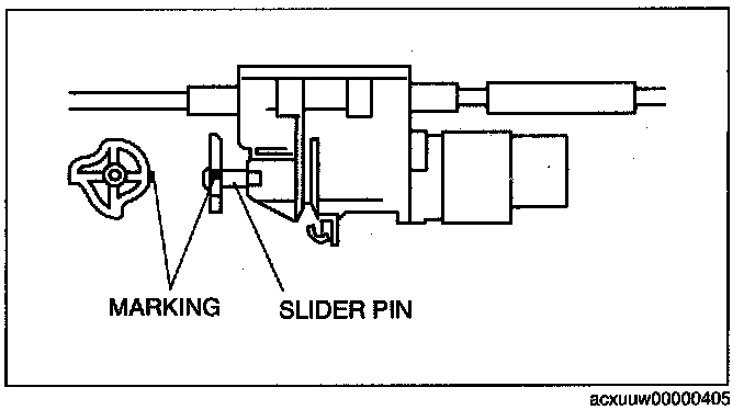 6. Verify that the marking on the slider pin is positioned as shown in the figure.