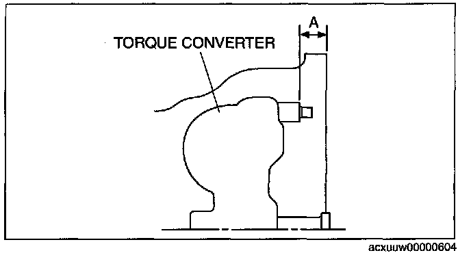6. To ensure that the torque converter is installed accurately, measure distance A between the end of the torque converter and the end of the converter housing.