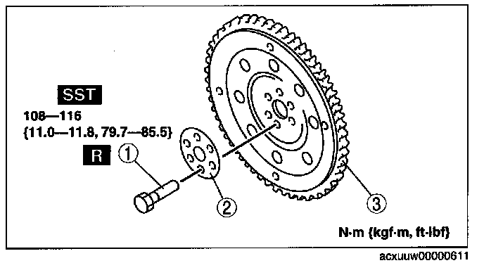 5. Tighten the new drive plate mounting bolts in two or three steps in the order shown.