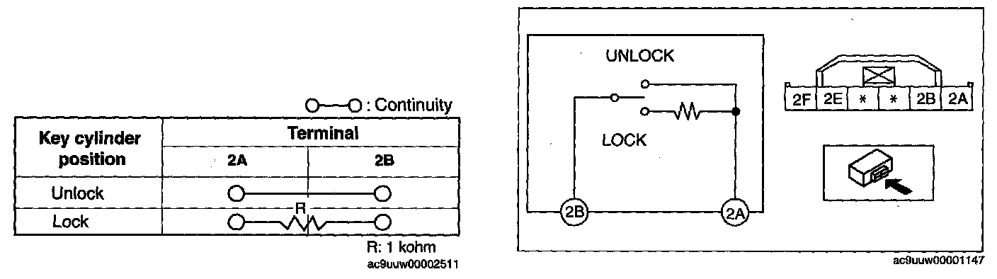 FRONT DOOR KEY CYLINDER SWITCH INSPECTION