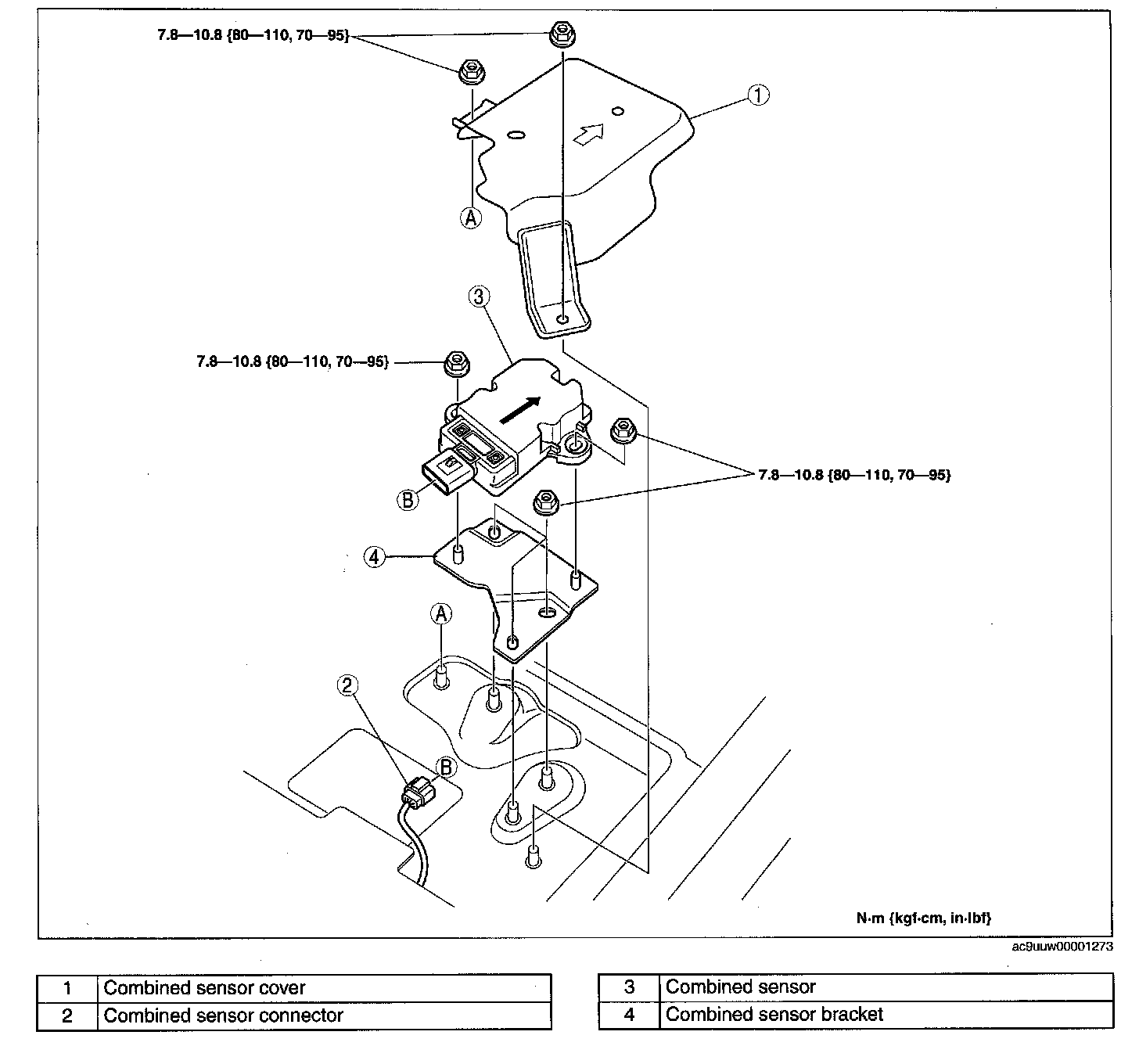 ^ The internal parts of the combined sensor could be damaged if dropped. Be careful not to drop the combined sensor. Replace the combined sensor if it is subjected to an impact. Also, do not use an impact wrench or other similar air tools when removing/installing the sensor.