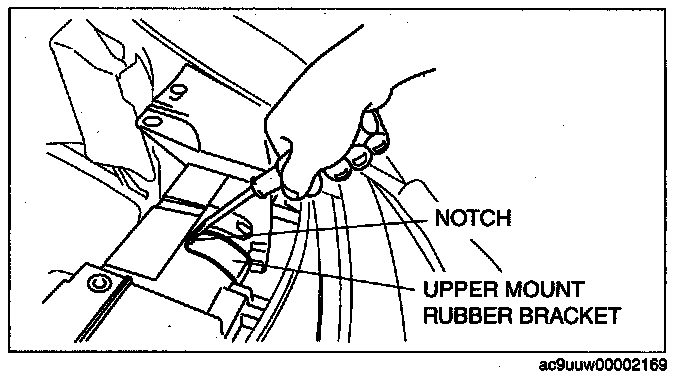 ^ Do not apply force excessively and in the directions that are not specified, otherwise the upper mount rubber bracket could be damaged.