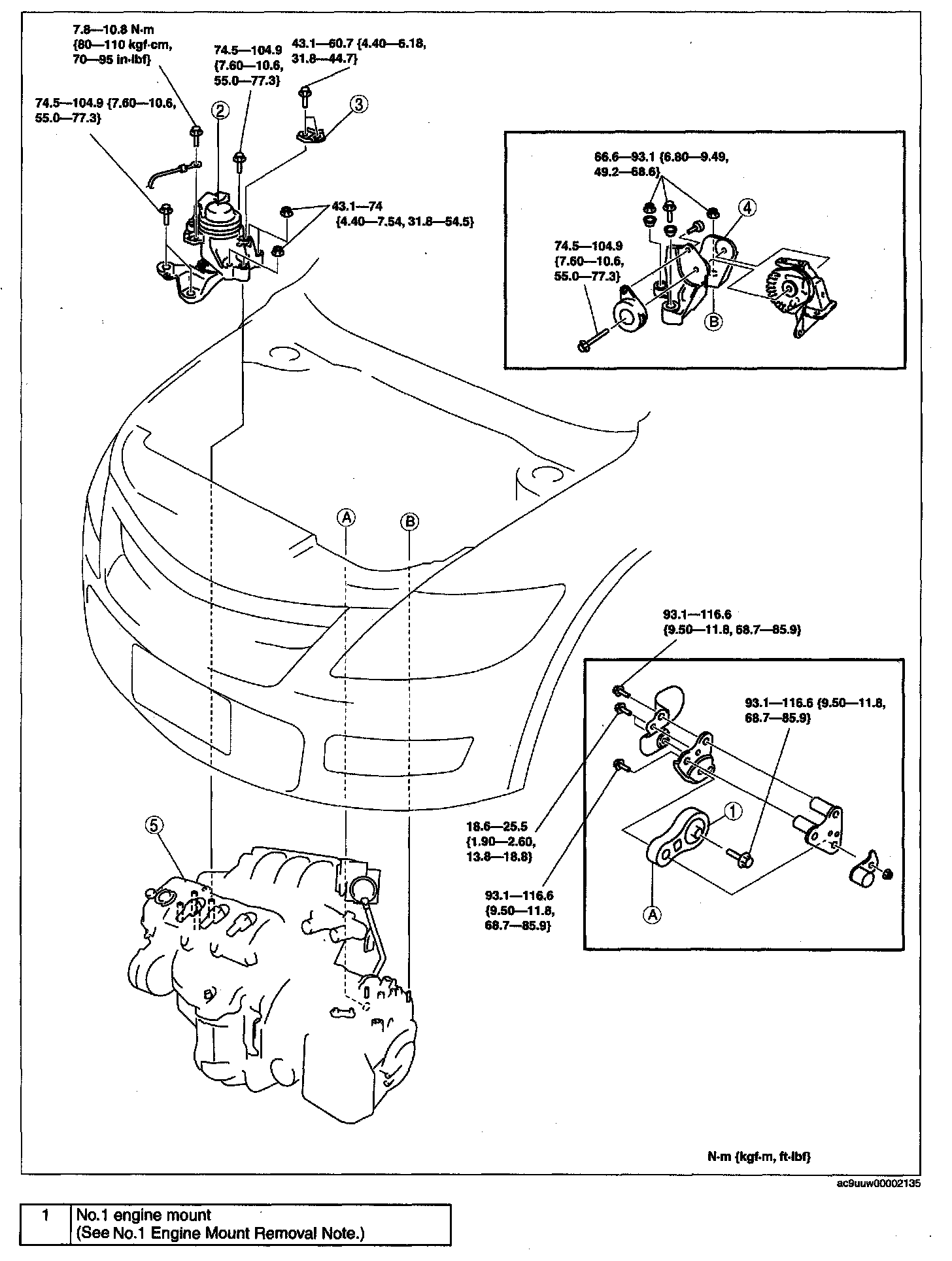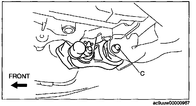 7. Tighten the No.1 engine mount bolt C at the specified torque.