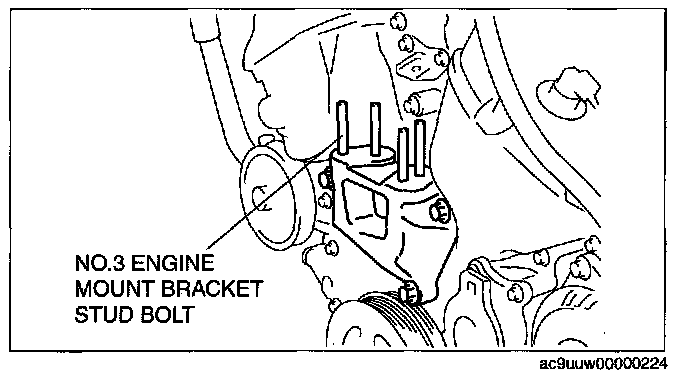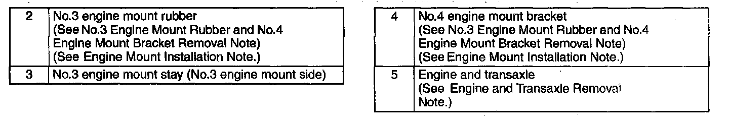 No.3 Engine Mount Rubber and No.4 Engine Mount Bracket Removal Note