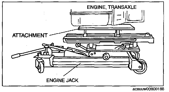 1. Secure the engine and transaxle using an engine jack and attachment.