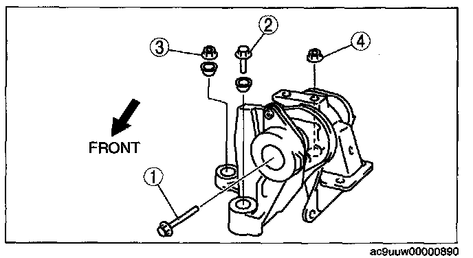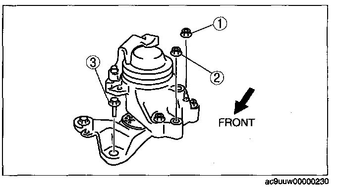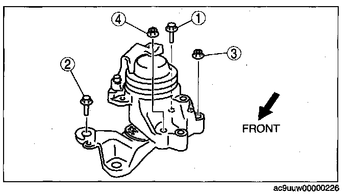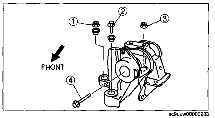 3. Temporarily tighten the No.3 engine mount bolts and nuts in the order shown in the figure.