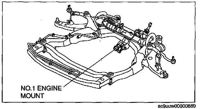 5. Remove the No.1 engine mount, No.1 engine mount bracket and the front crossmember as a single unit.