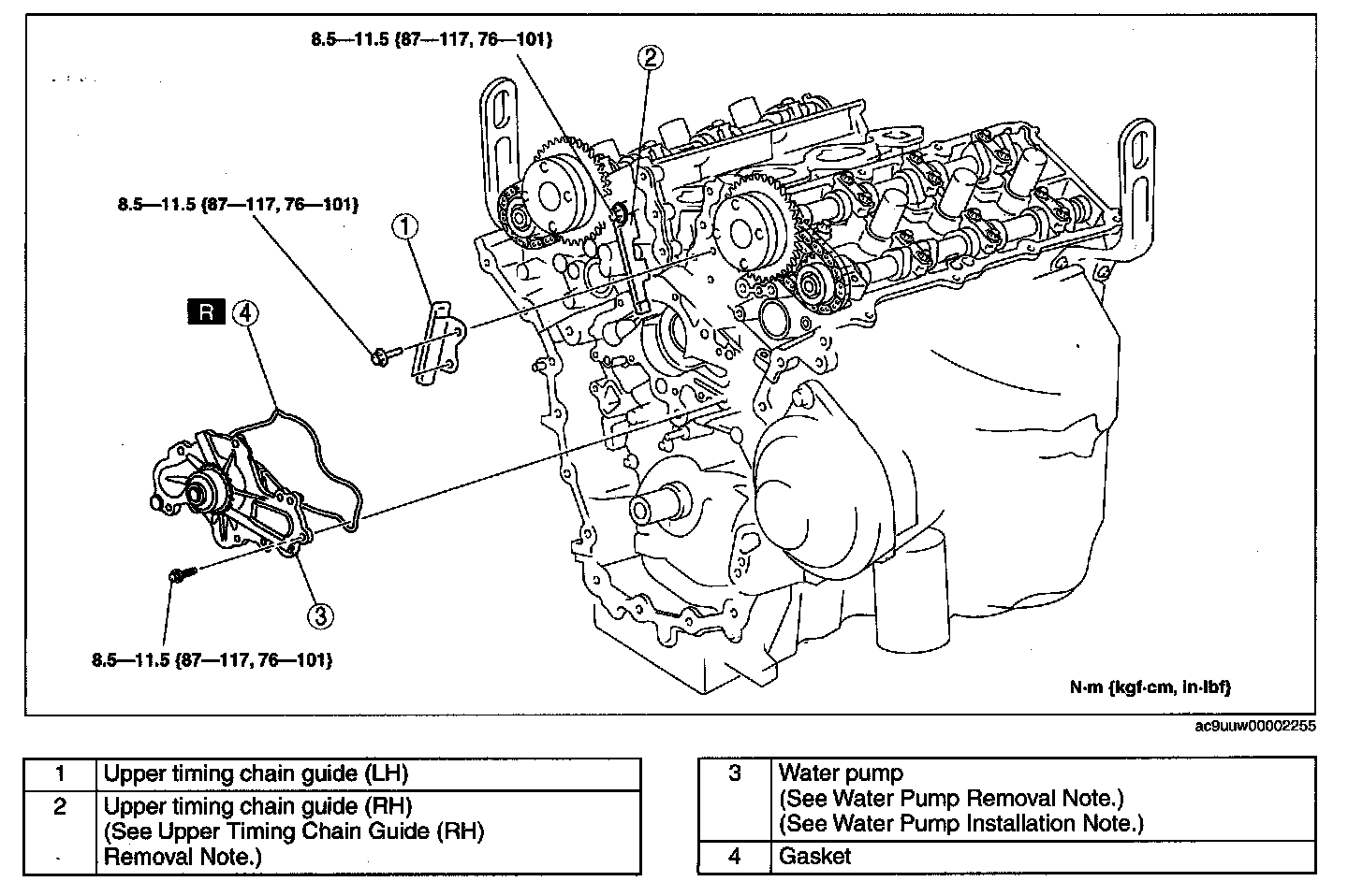 Upper Timing Chain Guide (RH) Removal Note