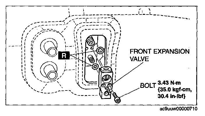 5. Remove the front expansion valve. Do not allow compressor oil to spill.