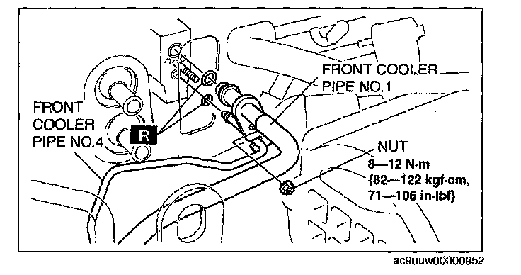 20. Remove the front cooler pipe No.1 bracket installation nut.