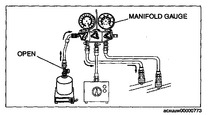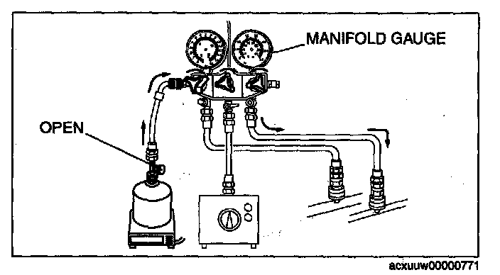 1. Open all the valves of the manifold gauge.