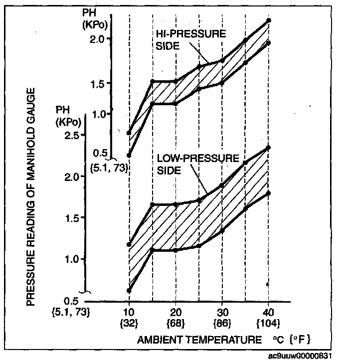 REFRIGERANT PRESSURE CHECK1. Connect the manifold gauge. (See REFRIGERANT SYSTEM GENERAL PROCEDURES.)