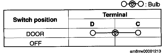 Verify that the continuity between the cargo compartment light terminals is as indicated in the table.