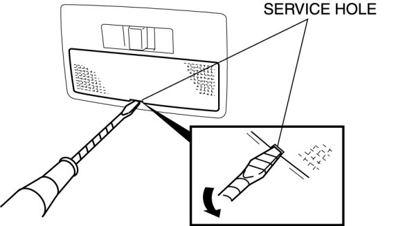 2. Insert a tape-wrapped flathead screwdriver into the service hole and pry with the screwdriver in the direction shown by the arrow to remove the lens.