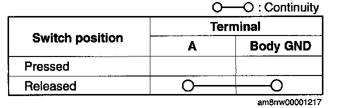 terminal and the body ground is as indicated in the table.