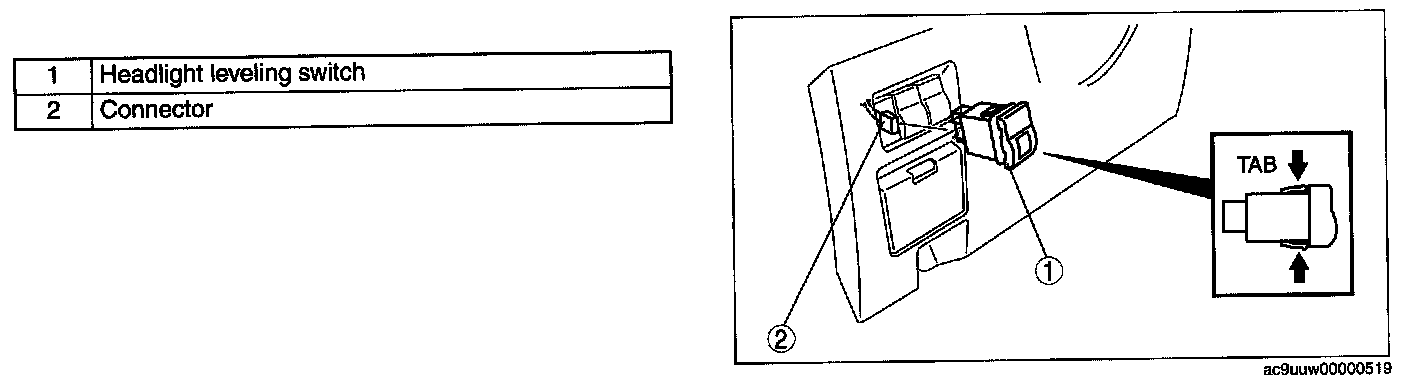 HEADLIGHT LEVELING SWITCH REMOVAL/INSTALLATION1. Disconnect the negative battery cable.
