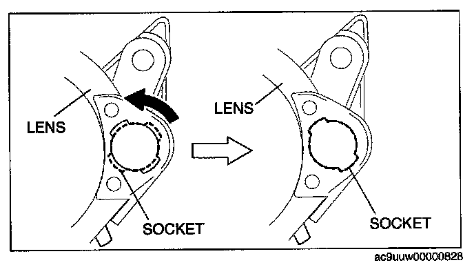 1. Remove the socket by turning it in the direction shown by the arrow.