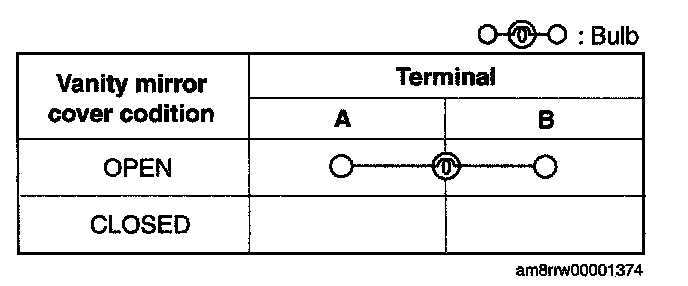 - If not as indicated in the table, inspect the bulb. If there is no malfunction, replace the sunvisor.