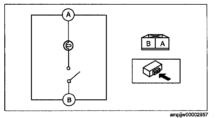 2. Verify that the continuity between the vanity mirror illumination terminals is as indicated in the table.