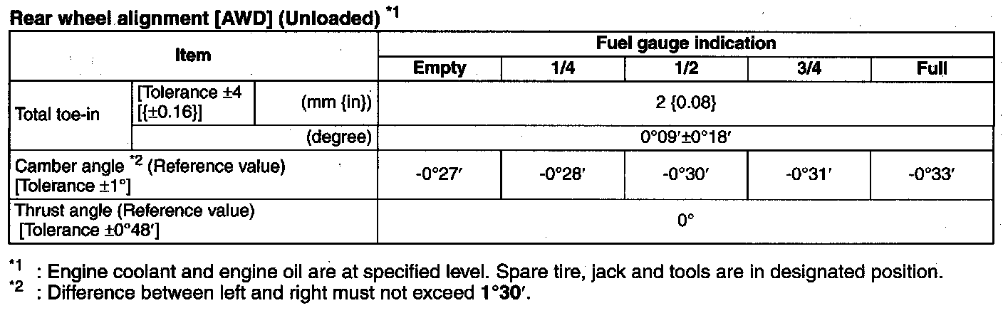 Rear wheel alignment [AWD] (Unloaded) *1