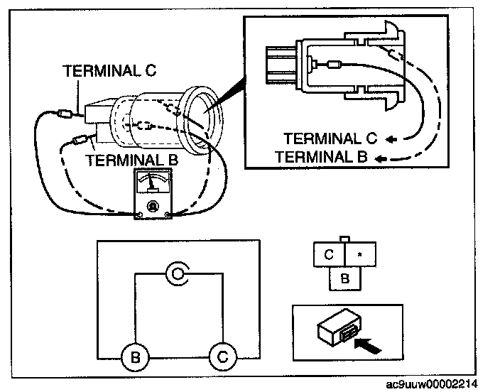 Connect a tester as shown in the figure and verify that there is continuity.
