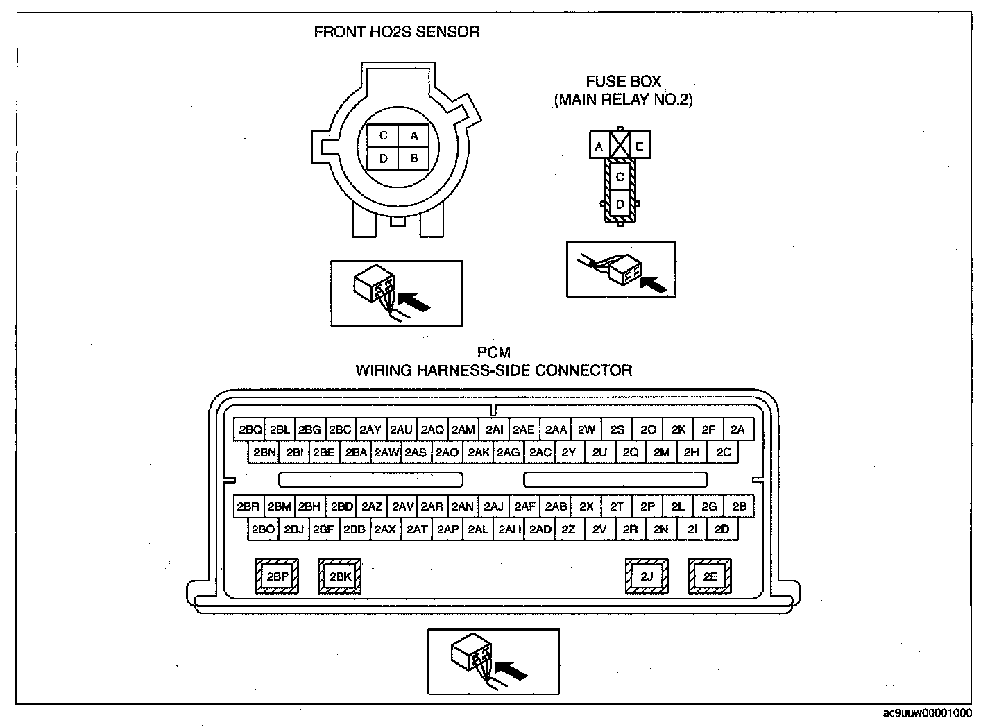 - HO2S (RH) terminal A and PCM terminal 2J
