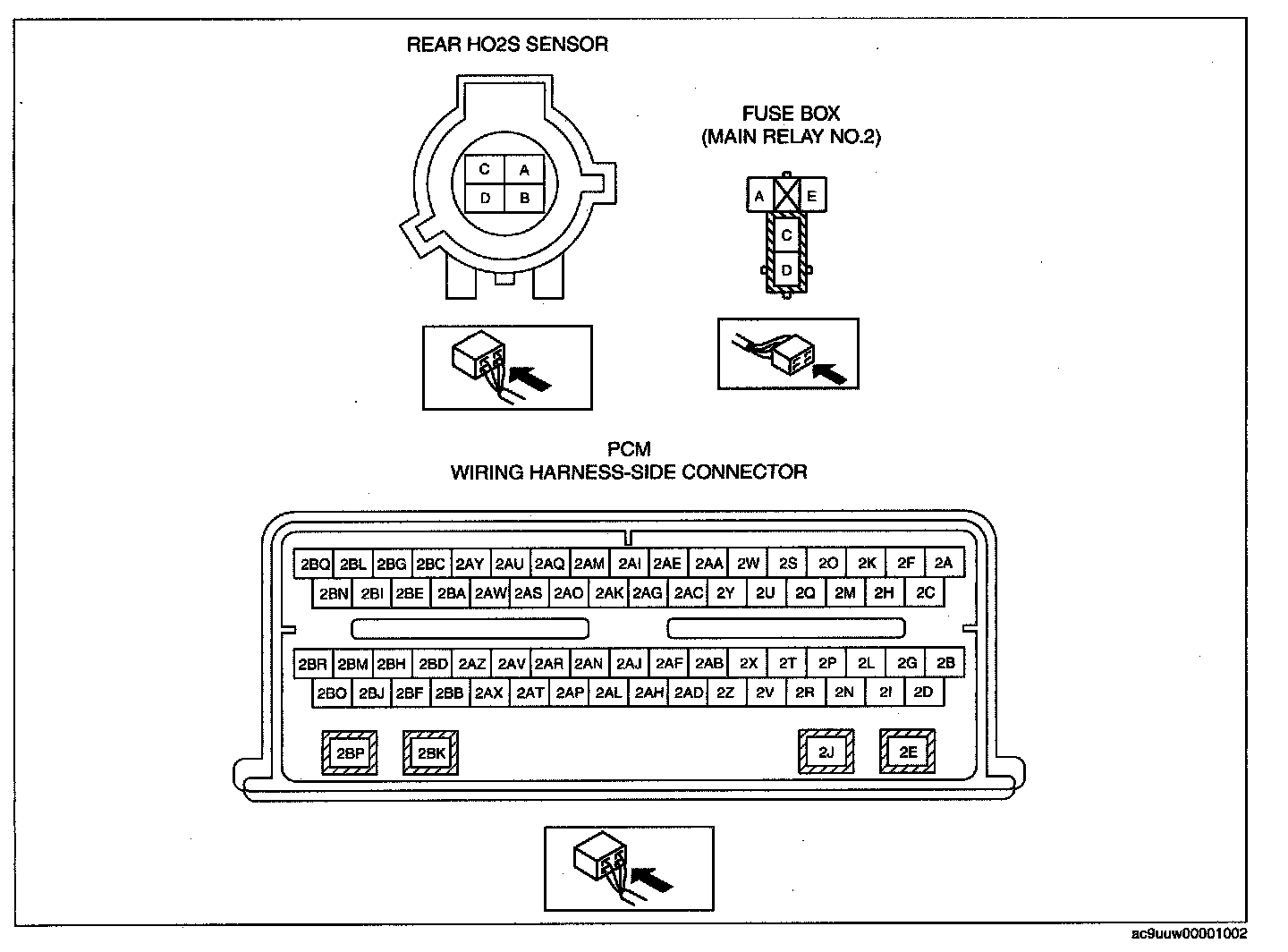 - HO2S (RH) terminal A and PCM terminal 2AS