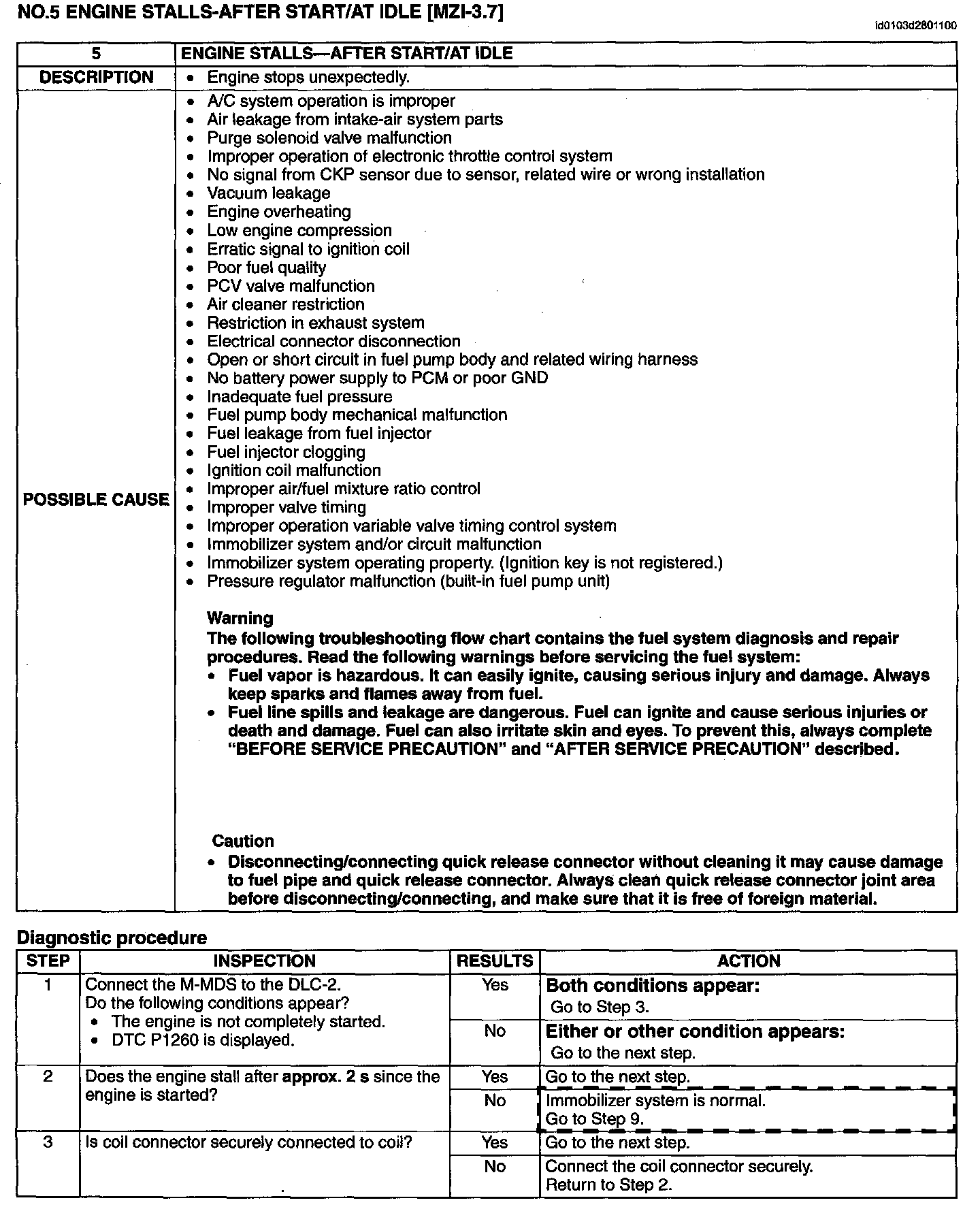 No.5 Engine Stalls-After Start/At Idle